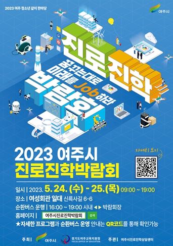 [제주교통복지신문 김강석 기자] 여주시와 경기도여주교육지원청이 주최하고 여주시 진로진학상담센터에서 주관하는 '2023 여주시 진로진학박람회' “꿈꾸는 대로 미래를 JOB하라.”가 5월 24일~25일, 2일간 여성회관 일대에서 개최된다.