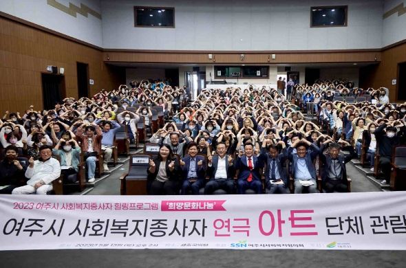 이날 행사는 여주시가 주최하고 여주시사회복지협의회가 주관했으며, 관내 사회복지시설 종사자 380명이 세종국악당에서 공연하는 연극“아트”를 단체 관람하며 지역사회 복지증진을 위한 재충전의 시간을 가졌다.