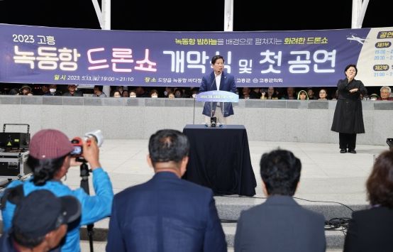 군에 따르면, 지난 13일 토요일 저녁 8시 녹동 바다정원에서 녹동항 드론쇼 개막 축하 버스킹 공연을 시작으로 드론 500대가 펼치는 군집비행 빛의 향연을 관람하기 위해 8천여명의 군민과 관광객들이 참여한 가운데 성황리에 첫 공연을 마쳤다고 밝혔다.