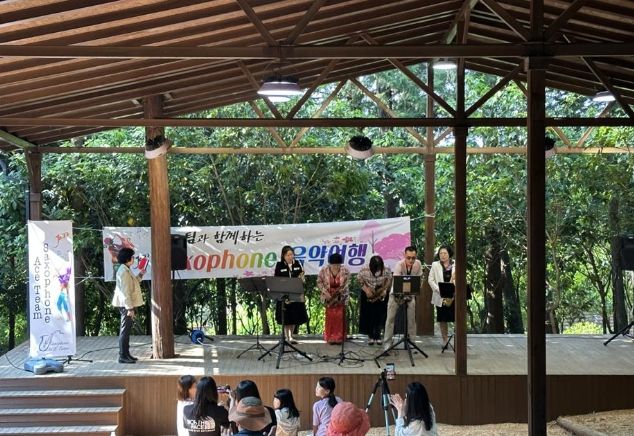우드랜드 내 야외공연장에서는 동호회 에이스팀의 재능기부로 색소폰 연주와 한국무용 등 다채로운 장르의 공연을 선보였다.