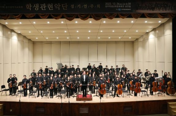 학생관현악단은 관내 초~고에 재학 중인 90명의 학생과 지도강사로 구성된다. 14개 파트별로 매주 토요일과 주중 방과 후 시간을 할애해 공연 준비를 해 왔으며 음악적 역량을 강화하고 있다.