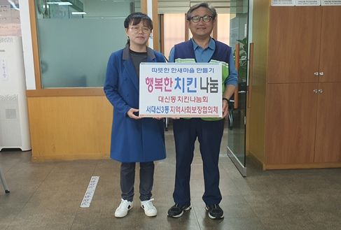 [제주교통복지신문 김강석 기자] 부산 서구 대신동 치킨나눔회는 지난 15일 서대신3동에 거주하는 저소득 취약계층 9세대에 치킨을 후원하여 따뜻한 이웃사랑을 나누었다.