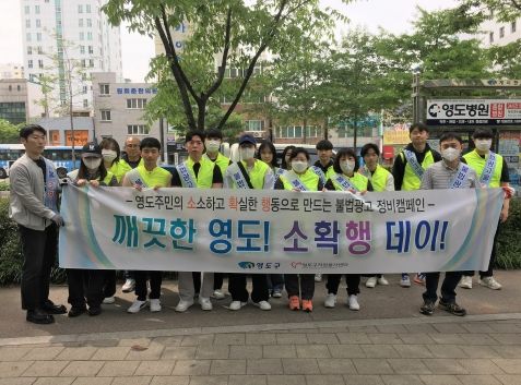 [제주교통복지신문 김강석 기자] 부산시 영도구는 불법광고물 없는 깨끗한 도시환경 조성을 위한 ‘깨끗한 영도! 소확행 데이!’캠페인 및 정비 행사를 지난 5월 12일 봉래1동 간선도로변 및 골목길 등지에서 개최했다.