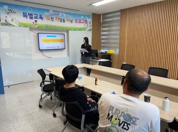 [제주교통복지신문 김강석 기자] 경산교육지원청() Wee센터는 2023년 5월 15일 경산교육지원청 학생교육지원관 3층 Wee센터에서 경산관내 학생 및 학부모를 대상으로“특별교육 도(전)깨(달음)비(상) 프로그램”을 진행했다.