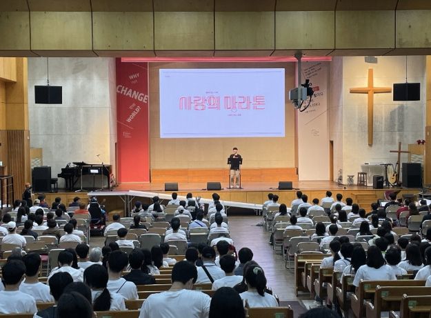 사랑의 마라톤은 포항지역 장애인 참가자와 비장애인 도우미가 함께 마라톤 코스를 완주하는 지역 나눔 사업으로, ‘함께 한마음으로 모이는 날’이라는 주제로 열린 이번 행사에서는 장애인 참가자, 비장애인 도우미 600여 명이 참가해 한동대학교 내 마라톤 구간 4km를 완주했다.