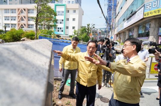 [제주교통복지신문 김강석 기자] 하윤수 부산광역시교육감이 15일 오후 2시 사하구 하단초등학교의 담장을 학교 안쪽으로 이동해 통학로를 넓히는 공사 현장을 점검했다.