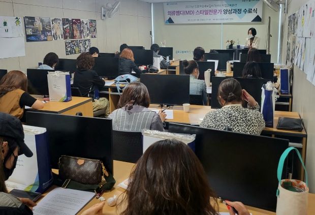 '의류엠디(MD) 스타일전문가 양성과정'은 김포여성새로일하기센터에서 진행한 직업훈련과정으로 패션의류엠디(MD)로 진입을 희망하는 미취업여성 대상으로 지난 4월 3일에 개강하여 총 26일간, 104시간으로 진행됐으며 20명 전원 수료했다. 이 과정은 ▲패션상품 기획전략 ▲패션디자인 스타일링 실습 ▲상품페이지 등록 ▲패션(VMD) 실전 ▲색채학과 컬러이미지 배색 ▲엠디(MD)엑셀실무 ▲직무소양 및 취업대비 교육으로 구성하여 관련 업종 재취업 및 의류엠디(MD) 실무에 적합한 교육생 양성을 목표로 진행됐다.
