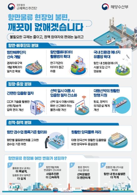 [제주교통복지신문 김강석 기자] 규제혁신추진단과 해양수산부는 「항만물류분야 규제합리화를 통한 수요자 편의증진방안」을 마련하여 5월 12일 규제개혁위원회에 보고하고 시행키로 했다.