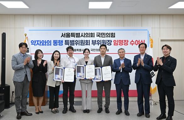 [제주교통복지신문 김강석 기자] 서울특별시의회 국민의힘 약자와의동행 특별위원회(위원장 이종배 의원, 이하 특위)는 12일 국민의힘 회의실에서 부위원장단 추가선임에 따른 임명장 수여식과 제9차 간담회를 개최했다.