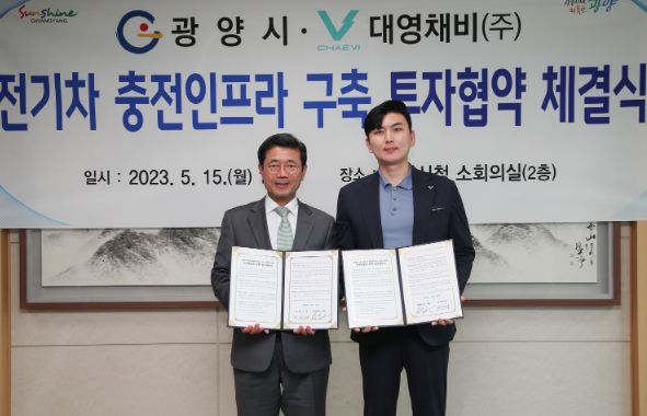 이날 협약을 통해 광양시는 공공청사 및 공영주차장에 전기차 충전기 설치를 위한 부지를 유상으로 제공하고, 대영채비(주)는 20억원 상당을 투자해 해당 부지에 전기차 충전시설(급속 30기 포함) 약 100여 기를 설치하고 유지관리 서비스를 제공할 계획이다.