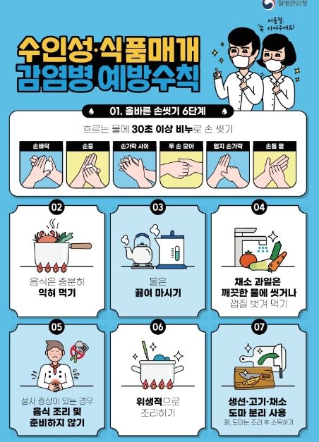 시는 건강한 여름을 보낼 수 있도록 ▲흐르는 물에 30초 이상 비누로 손씻기 ▲음식은 충분히 익혀 먹기 ▲물은 끓여 마시기 ▲채소, 과일은 깨끗한 물에 씻거나 껍질 벗겨 먹기 ▲설사 증상이 있는 경우 음식 조리 및 준비하지 않기 등 예방수칙을 준수할 것을 강조했다.