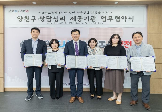이를 위해 앞서 구는 지난 12일 구청 회의실에서 사업에 참여하는 꿈꾸는 나무 상담센터 등 전문 심리 상담기관 5곳과 업무협약을 맺은 바 있다. 이번 협약을 통해 구청과 각 기관은 전문상담서비스 제공으로 소음대책지역 주민 삶의 질 항상 등 공익효과를 극대화하는데 적극 협력하기로 했다.