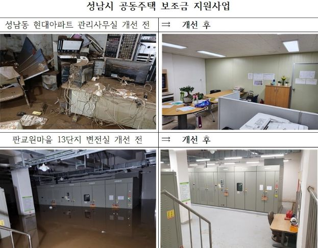 지원금 중 10억원은 지난해 8월 집중호우로 단지 내 기계·전기실 침수 등의 피해를 본 판교동 판교원마을 13단지 등 21곳 아파트단지의 자연 재난 피해복구 지원비다.