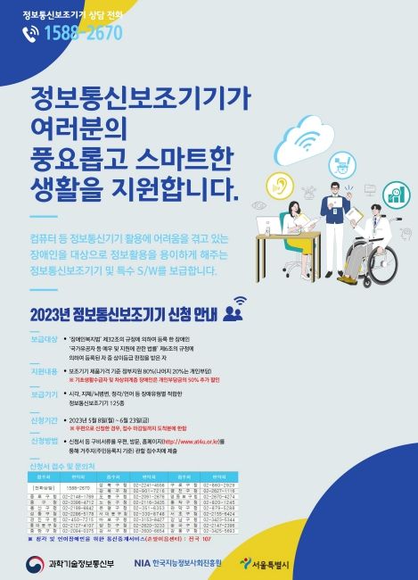 희망자는 다음달 23일까지 신청서, 활용계획서 등을 작성해 정보통신보조기기 홈페이지 또는 구청 정보통신과나 동 주민센터를 방문해 신청할 수 있다.