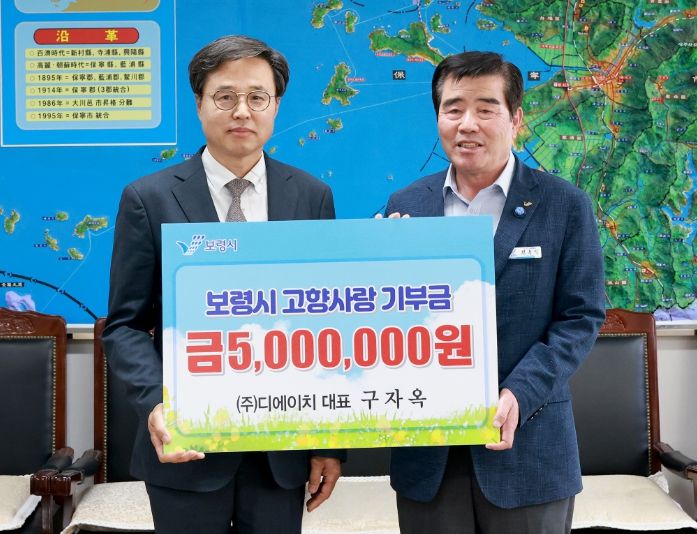 [제주교통복지신문 김강석 기자] 보령시는 지난 15일 시장실에서 김동일 시장과 ㈜디에이치 구자옥 대표가 참석한 가운데 고향사랑기부금 500만 원 전달식을 개최했다.