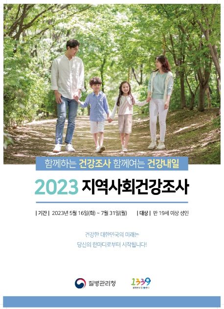 2023년 지역사회건강조사는 지역보건법에 따른 국가 승인 통계조사다. 지역의 건강통계를 생산해 지역주민의 건강증진을 위한 기초자료로 활용된다.