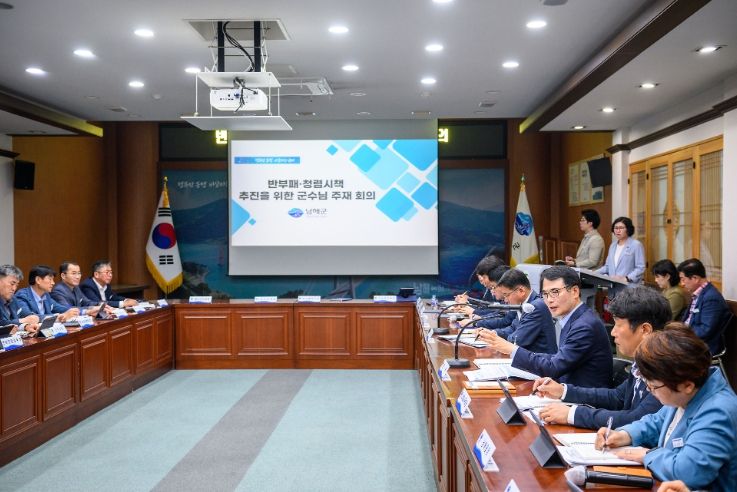 [제주교통복지신문 김강석 기자] 남해군은 15일 군청대회의실에서 장충남 군수가 직접 주재하는 ‘반부패와 청렴시책 추진을 위한 공유회의’를 개최했다.
