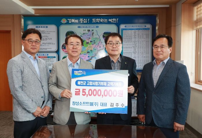 풍양면 출신 창성소프트젤(주) 김주수 대표가 500만 원을 기부해 예천군에 사랑을 전달했으며 이어 영주시에 거주하는 성도조경 이승호 대표와 직원 김현주씨와 강동국씨가 각 100만 원의 통 큰 기부를 했다.