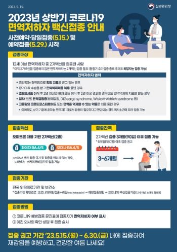 [제주교통복지신문 김강석 기자] 이번 접종은 질병관리청의 ‘2023년 상반기 코로나19 고위험군 접종계획’에 따라 지난 동절기 추가접종 시 2가백신 접종을 완료한 사람 중 만 12세 이상 면역저하자와 의료진 상담을 통해 접종을 권고받은 만 65세 이상 고령층을 대상으로 실시한다.