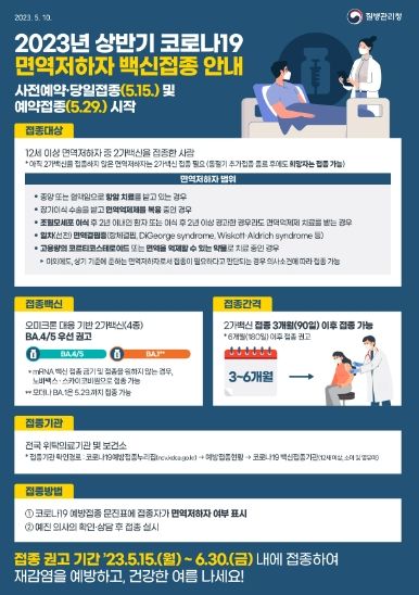 접종 대상은 2가백신 접종 후 3개월(90일)이 경과된 항암치료, 면역억제제를 복용 중인 만 12세 이상 면허저하자와 의료진 상담으로 접종을 권고받은 만 65세 이상이다.