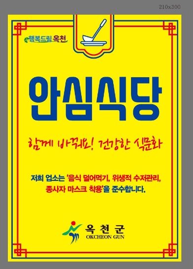 [제주교통복지신문 김강석 기자] 충북 옥천군은 지난해에 이어 관내 일반음식점을 대상으로 안심식당을 추가 지정했다고 16일 밝혔다.