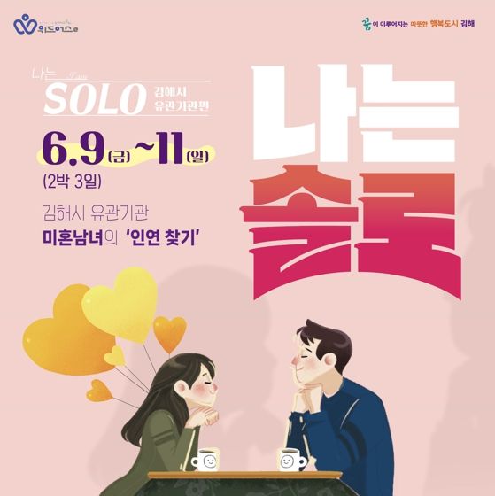 [제주교통복지신문 김강석 기자] 김해시는 인구의 날 기념 『2023 김해 인구주간』의 일환으로 미혼남녀 만남을 주선하는 인연 찾기 프로그램 ‘나는 솔로'나는SOLO'-김해 유관기관편’를 추진한다고 16일 밝혔다.