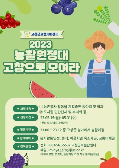 [제주교통복지신문 김강석 기자] 고창군로컬JOB센터가 영농철 군내 농가 일손 부족 해소를 위해 2023년 인접 도시권 농활원정대를 모집하기로 했다.