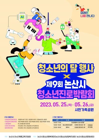 [제주교통복지신문 김강석 기자] 논산시청소년행복재단은 오는 5월 25일부터 26일 이틀간 시민가족공원에서‘미래의 나를 만나다!’슬로건을 내걸고 ‘제9회 논산시 청소년진로박람회’를 개최한다.