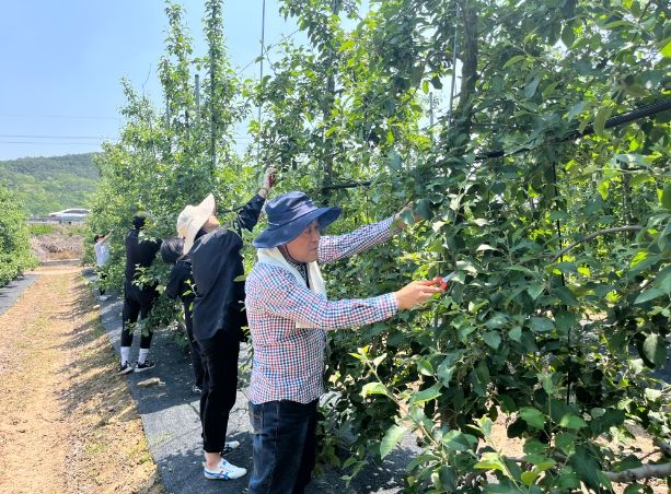갑작스러운 사고로 일손이 부족해 시름이 깊은 우보면 미성리 농가를 찾아 적화작업(꽃따기) 등을 실시하여 일손돕기에 참여한 직원들이 책임감을 가지고 적극적인 일손돕기를 한 결과 작업을 잘 마무리 할 수 있었다.