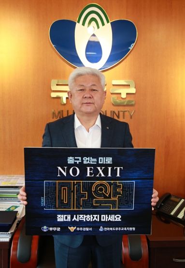 [제주교통복지신문 김강석 기자] 황인홍 무주군수가 지난 16일 마약범죄 예방을 위한 온라인 릴레이 ‘NO EXIT 캠페인’에 참여해 눈길을 끌고 있다.