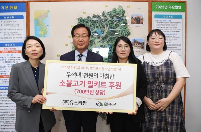 16일 완주군은 ㈜유스타팜이 양질의 천원의 아침밥 사업 확대를 기원하며 소불고기 밀키트 세트(400개)를 후원했다고 밝혔다.
