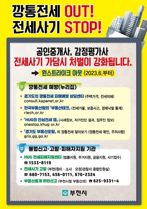 또한 부천시는 올해 하반기 공인중개사 교육 시 깡통전세 및 전세사기 피해예방 교육에 최선을 다한다는 계획이다.