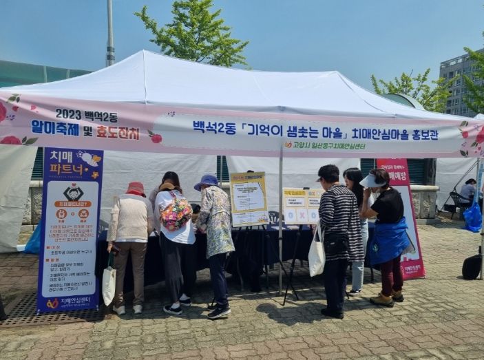 보건소는 백석2동 알미축제 및 효도잔치가 열린 알미공원에 홍보관을 설치해 많은 주민에게 치매안심마을에 대해 알리고 다양한 체험 프로그램을 운영했다.