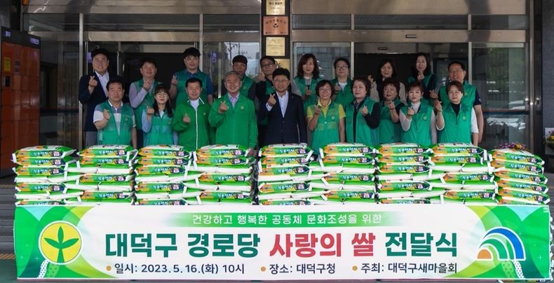 [제주교통복지신문 김강석 기자] 대전 대덕구는 가정의 달을 맞아 어르신 공경의 의미를 되새기고자 대덕구새마을회로부터 쌀 400포(1080만원 상당)를 전달받았다고 밝혔다.