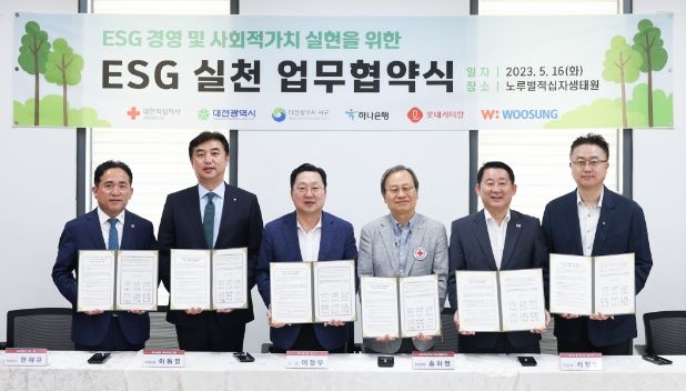 업무협약은 이장우 대전시장, 서철모 서구청장, 대한적십자사 대전세종지사 송하영 회장, 이동열 하나은행충청영업그룹 대표, 황민재 롯데케미칼 종합기술원장, 한재규 주식회사 우성 대표 등이 참석해 체결했다.
