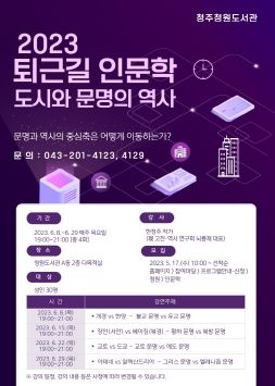 [제주교통복지신문 김강석 기자] 청주청원도서관은 성인 대상으로 퇴근길 인문학‘도시와 문명의 역사’ 강좌를 운영한다고 16일 밝혔다.