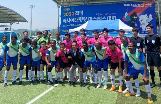 [제주교통복지신문 김강석 기자] 따사로운 햇살이 눈부신 꽃내음 가득한 5월,‘2023 전북 아시아‧태평양 마스터스대회’의 축구종목 40대부 경기가 지난 5월 14일, 16일 정읍시 태인성황축구장에서 2일간의 일정으로 성황리에 마무리됐다.