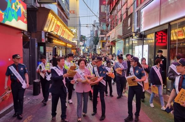[제주교통복지신문 김강석 기자] 대구광역시 자치경찰위원회는 5월 15일 오후 7시에 중구 동성로 클럽골목에서 최근 사회적 이슈로 떠오르고 있는 마약과 불법촬영 범죄예방을 위한 민관경 합동 캠페인을 개최했다.