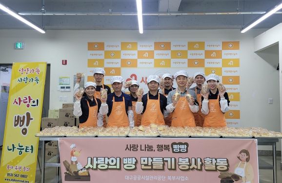 김승민 대구공공시설관리공단 북부사업소장은 “갓 구운 빵이 전해주는 따뜻함과 봉사단의 온정이 주위 소외된 이웃들에게 큰 힘이 되길 바란다”라며 “앞으로도 주민들과 적극 소통하고 지역사회공헌을 위해 노력하는 북부사업소가 되겠다”라고 말했다.