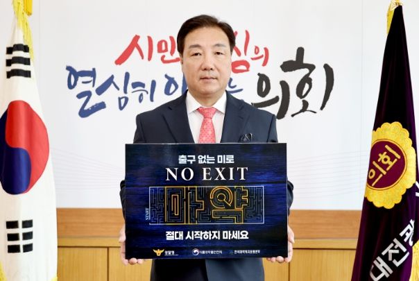 [제주교통복지신문 김강석 기자] 대전광역시의회 산업건설위원회 이병철 위원장이 16일 마약범죄 예방을 위한 『NO EXIT』 릴레이 캠페인에 참여했다.