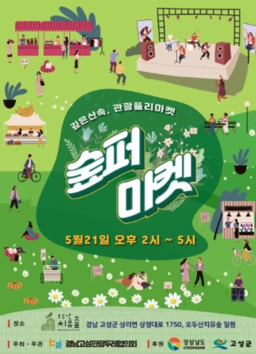 [제주교통복지신문 김강석 기자] 고성군이 5월 21일에 제1회 숲퍼마켓(깊은 산 속, 관광 플리마켓)을 고성군 상리면 오두산 치유숲에서 개최한다.