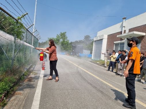 이번 훈련은 매년 여주소방서와 합동으로 실시하는 소방훈련으로 전 직원이 부여받은 임무를 사전에 숙지하고, 소화기의 위치 및 사용법 실습 등 화재 시 초기대응 훈련으로 진행됐으며, 아울러 식·용수 사고 대비 현장조치 행동매뉴얼 교육을 병행 실시하여 위기 시 현장반응 속도를 단축하는데 중점을 두었다.