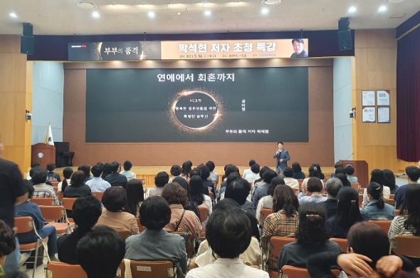 박석현 작가는 “타인을 존중하고 배려하는 마음이 바탕이 된다면 부부관계부터 모든 인간관계에 어려움이 없을 것”이라고 하며, 〈연애에서 회혼까지 ‘비교적’ 행복한 결혼생활을 위한 특별한 솔루션〉이라는 주제로 강연을 했다. 시 홈페이지와 읍면동행정복지센터를 통해 모집된 시민 200여 명이 한 자리에 모여 듣고, 보고, 웃으며 ‘나’와 ‘가족’을 생각해보는 시간이 됐다.