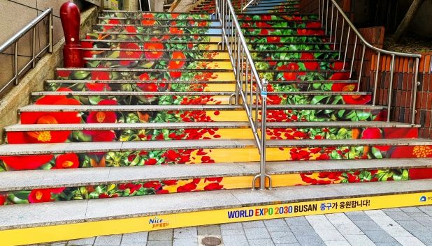 [제주교통복지신문 김강석 기자] 부산 중구에서 건강 메시지를 전파하고 2030 부산 세계엑스포 유치를 기원하는 ‘감염병 예방 건강 계단’을 조성했다.