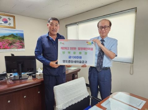 [제주교통복지신문 김강석 기자] 영도중앙새마을금고는 지난 5월 15일 영도구 영선2동 주민자율방역단에 2023년 방역활동 지원을 위한 후원금(유류권 130만원)을 전달했다.