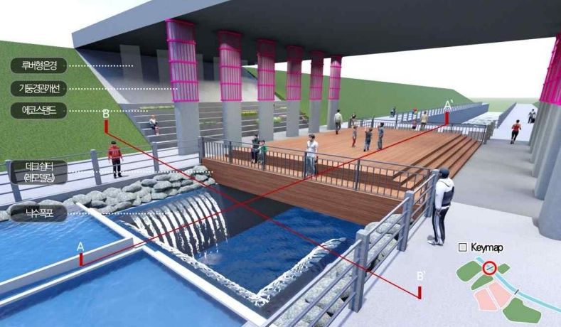 고덕천과 한강이 만나는 합류부에는 올림픽대로 확장공사가 진행중으로, 확장 후 넓어지는 올림픽대로 교량 하부는 최근 트렌드를 반영하여 운동, 놀이, 모임 등을 활발히 할 수 있도록 특화 거점으로 조성한다. 강동구민뿐만 아니라 한강을 이용하는 주민들까지 쉬어갈 수 있는 장소로 명소화할 예정이다.