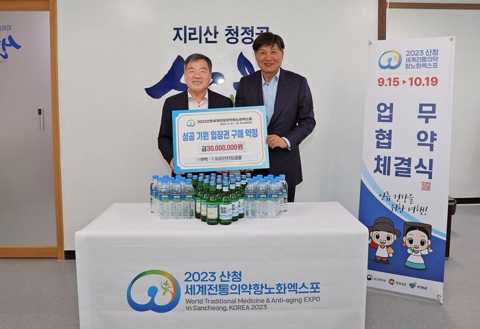 [제주교통복지신문 김강석 기자] 산청세계전통의약항노화엑스포조직위원회는 지난 16일 군수 집무실에서 무학그룹과 2023산청세계전통의약항노화엑스포의 성공 개최와 지역제품 애용 및 상호발전을 위한 후원 업무협약을 체결했다고 밝혔다.