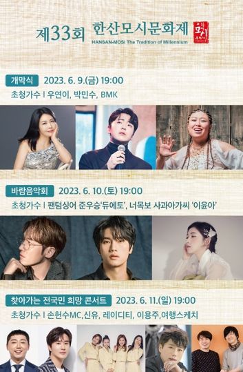 한편, 한산모시문화제는 6월 9일부터 6월 11일까지 한산모시관 일원에서 ‘1500년 한산모시, 이음과 만남’이라는 주제로 열린다.