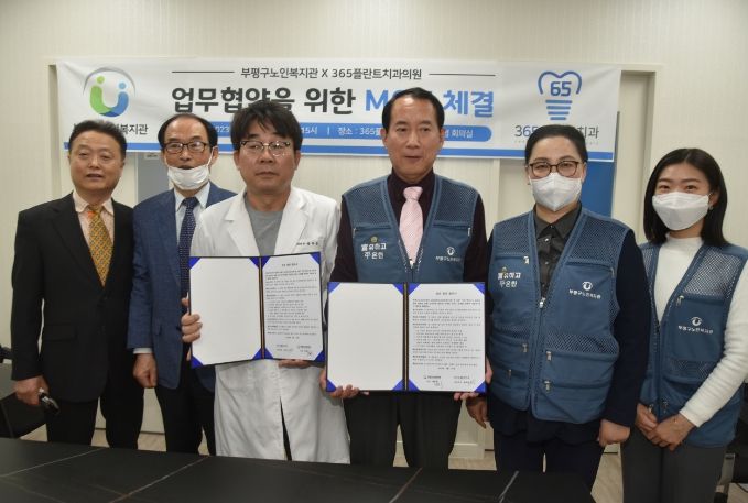 [제주교통복지신문 김강석 기자] 인천시 부평구노인복지관과 365플란트 치과 의원은 상호교류와 협력을 통해 부평구 지역사회 발전과 복리증진을 도모하고 상호연계 지원하기 위한 업무협약을 체결했다고 밝혔다.