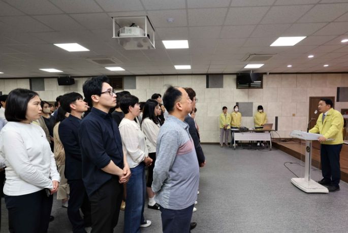 김찬진 동구청장을 포함한 전 직원은 오후 2시 훈련 경보가 발령됨에 따라 대피 유도 요원의 안내로 신속히 지하 소나무홀로 대피해 재난안전교육을 받았다.